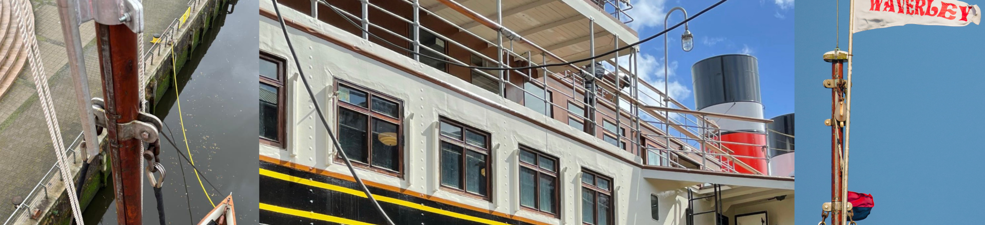 To allow the work on Waverley’s masts and windows to be completed by March 2026, Waverley’s supporters are being asked to help raise £135,000. All donations, large or small, are warmly welcomed. Contributions will help prepare Waverley for the 2026 season, during which she will proudly mark the 80th anniversary of her launch.