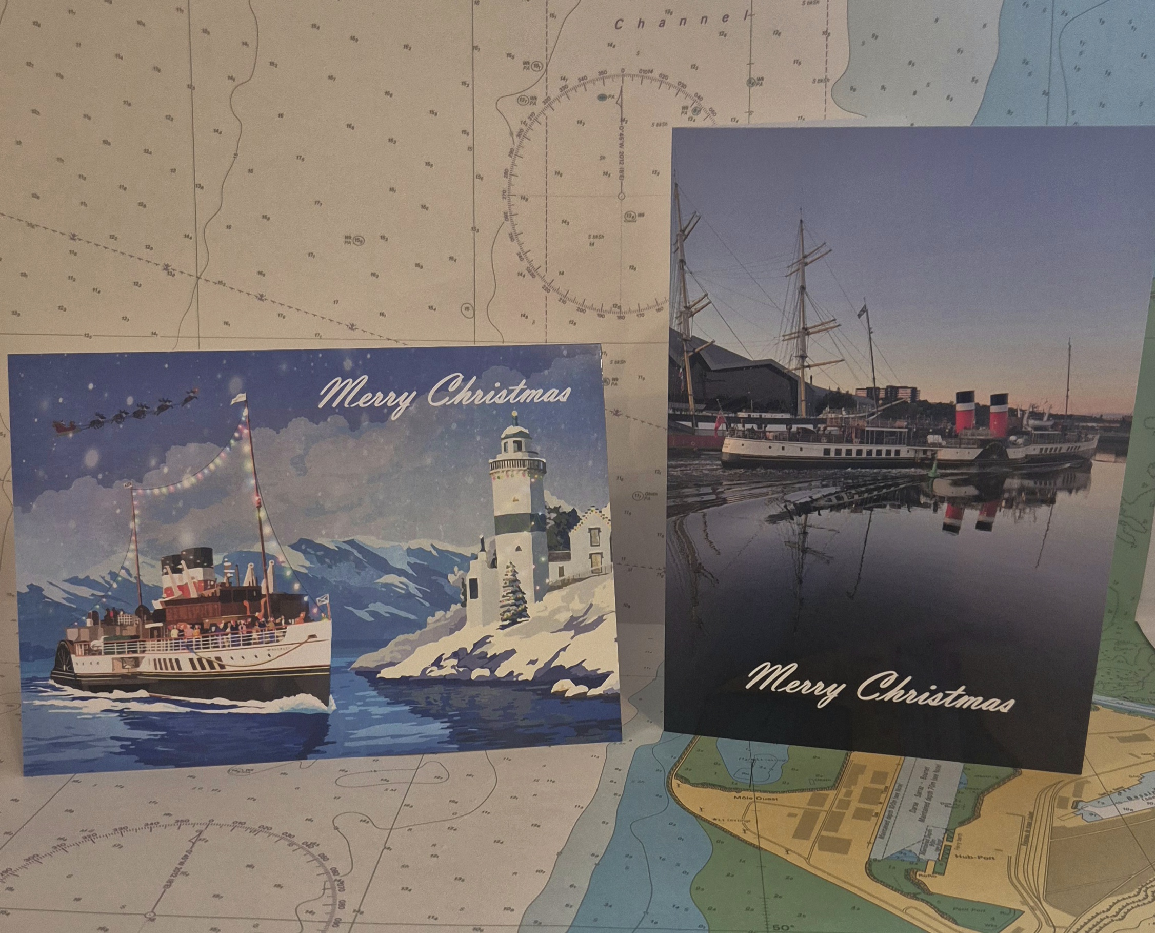 Available in packs of 8 cards £8.50 each including P&P – discounted amount for 2 packs (x16 cards). They come in cellophane packs along with envelopes. Both designs have an additional image inside of a snow covered Waverley.