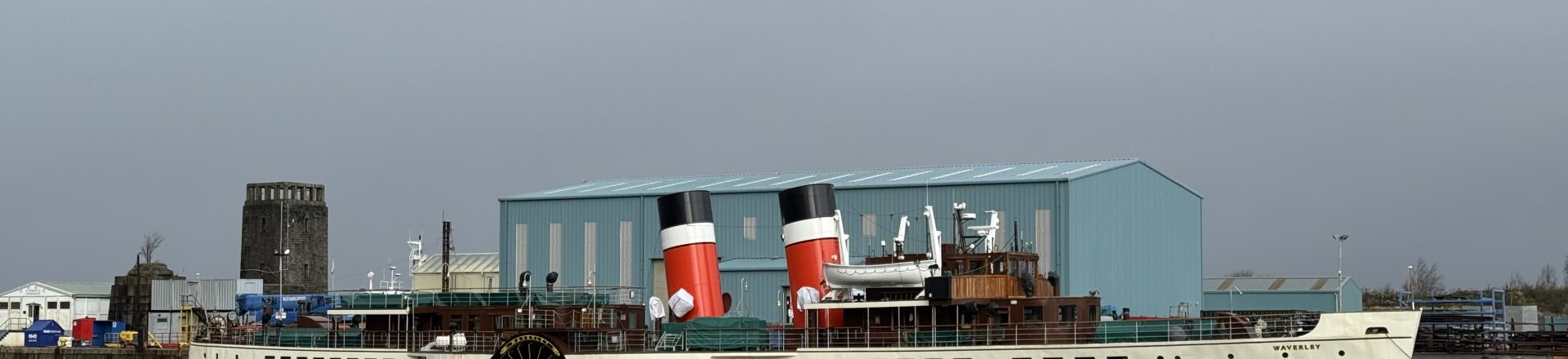 Waverley moved from Glasgow under her own power on Monday 16th February, firstly sailing down river turning at the Tail of the Bank before berthing at Greenock’s Custom House Quay. Waverley was then moved by tugs from the Custom House to the James Watt Dock to berth within Dales Marine Services shipyard facility.